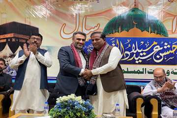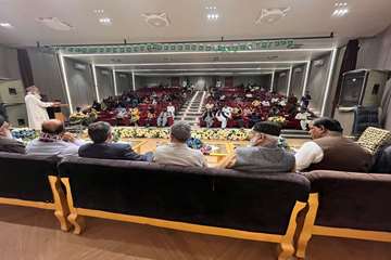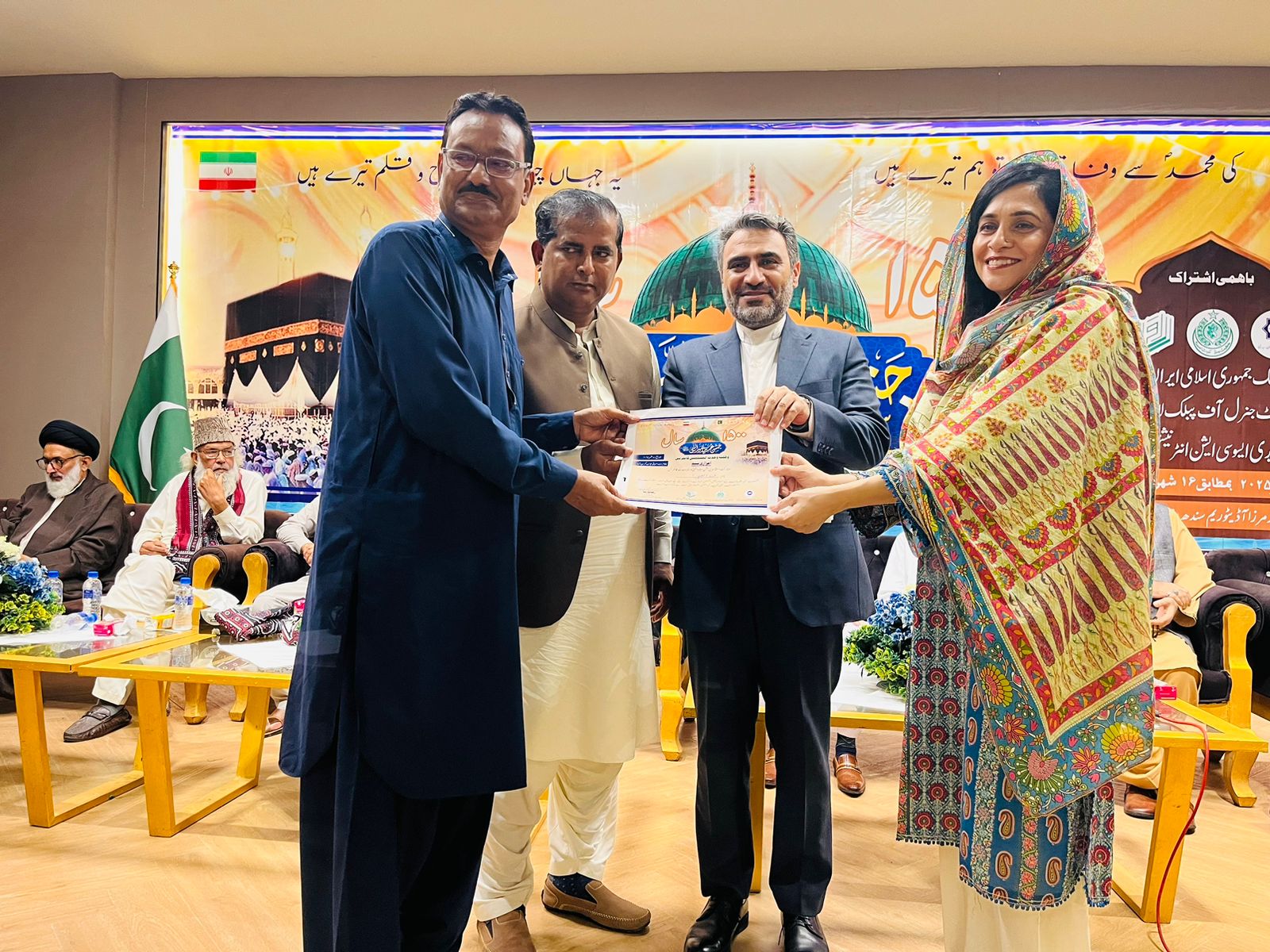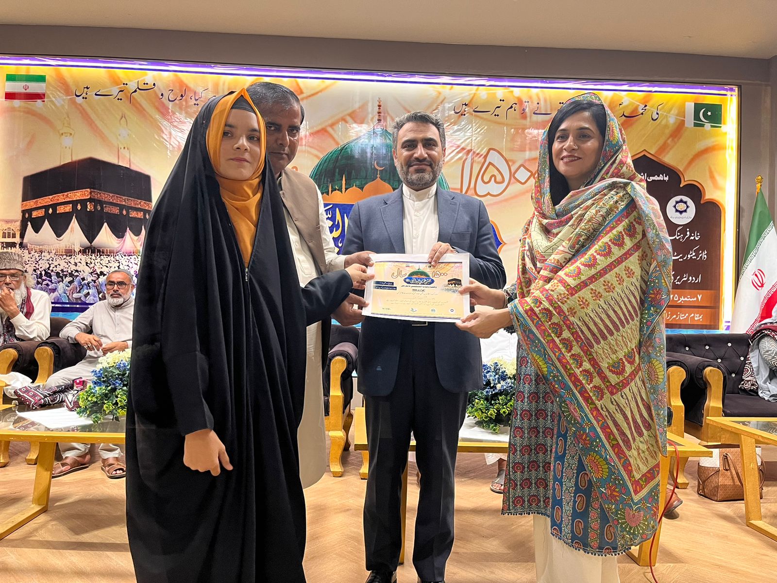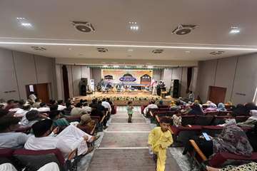 1500 ویں جشن عید میلاد النبی صلی اللہ علیہ وآلہ وسلم اور ہفتہ وحدت المسلمین بفرمان خمینی رحمتہ اللہ علیہ کی مناسبت سے ممتاز مرزا آڈیٹوریم ہال، سندھ میوزیم میں ایک شاندار پروگرام کا انعقاد کیا گیا مورخہ 7 ستمبر 2025 حیدرآباد اس پروگرام میلاد و کانفرنس کی میزبانی خانہ فرہنگ جمہوری اسلامی ایران کے ڈائریکٹر جنرل رضا پارسا، ڈائریکٹر جنرل آف پبلک لائبریریز سندھ غلام سرور چنڑ، اور اردو لٹریری ایسوسی ایشن انٹرنیشنل حیدرآباد کی صدر محترمہ سیدہ کنیز فاطمہ کی نگرانی میں ہوئی۔ پروگرام کا آغاز تلاوتِ قرآن سے ہوا، جو کوئٹہ سے آئے قاری عبدالباسط نے کی۔ پروگرام میں سنی اور شیعہ علماء کرام، اور سیاسی و سماجی معزز مہمانوں نے شرکت کی۔ جن میں ریجنل ڈائریکٹر پاپولیشن ویلفیئر حیدرآباد محترمہ گل نساء ٹالپر، سابق امیر جماعت اسلامی رہنما قمر مشتاق احمد صاحب، پروفیسر اخلاق احمد اخلاق، اور قدم گاہ مولا علی مسجد کے پیش امام مولانا حیدر عباس زیدی نے خطاب کیا۔ خانہ فرہنگ جمہوری اسلامی ایران حیدرآباد کے ڈائریکٹر رضا پارسا نے اپنی گفتگو کا آغاز اردو زبان میں کرتے ہوئے مہمانوں کو خوش آمدید کہا۔ انہوں نے کہا کہ رسول خدا صلی اللہ علیہ وآلہ وسلم کی زندگی کا مقصد انصاف اور عدل تھا۔ یہ موقع میلاد اور اتحاد کا موقع ہے۔ میں یقین کے ساتھ کہتا ہوں کہ اگر آج رسول خدا ہوتے تو وہ تمام مسلمان ممالک کو ایک ہو کر رہنے کا درس دیتے اور کہتے کہ فلسطین اور غزہ کے مظلوم مسلمانوں کا ساتھ دو اور وہ خود بھی اس احتجاج میں اپنی آواز بلند کرتے۔ انہوں نے پاکستان کی تعریف کرتے ہوئے کہا کہ میری نظر میں پاکستان میں سب سے زیادہ فلسطین کی حمایت میں آواز بلند ہوئی ہے۔ پروگرام میں اردو لٹریری ایسوسی ایشن کی طرف سے شعراء کرام نے نعتوں اور اشعار سے عقیدت کا اظہار کیا۔ نعت خوانوں نے نعت خوانی کی اور ایک طالبہ نے فارسی زبان میں رسول پاک کے لیے شعر پڑھ کر محبت کا اظہار کیا۔ ساتھ میں سندھ میوزیم کے نمائشی ہال میں ایرانی آرٹسٹوں کی بنائی ہوئی رسول پاک کے نام اور روضہ مبارک کی پینٹنگز، اور خانہ فرہنگ کے خطاطی اور نقاشی کے طلباء کی ہاتھ سے بنی ہوئی تصاویر نمائش کے لیے رکھی گئیں۔ آخر میں تمام نعت خوانوں اور شعراء کرام کو اعزازی سرٹیفکیٹ سے نوازا گیا۔ اسٹیج پر موجود معزز مہمانوں کو ڈائریکٹر رضا پارسا، ڈائریکٹر غلام سرور اور اردو لٹریری ایسوسی ایشن کی صدر کنیز فاطمہ کی طرف سے "اسوہ رسول اللہ" کی کتاب، اور مترجم منور بٹ کی طرف سے "حضرت ابوطالب" کی کتاب بطور تحفہ دی گئی۔ |