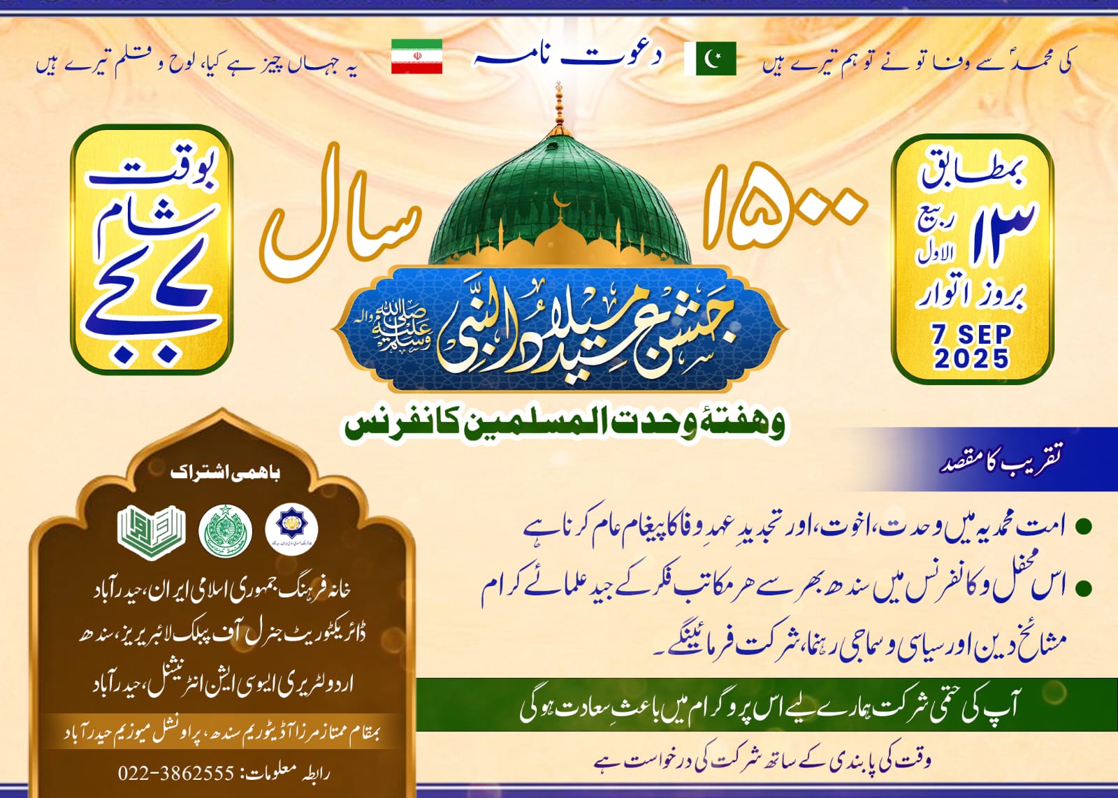 عظیم الشان پندرہ سوواں جشن عید میلاد النبی صلی اللہ علیہ وآلہ وسلم اور ہفتہ وحدت المسلمین بفرمان خمینی رح سندھ میوزیم حیدرآباد