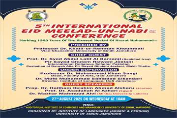 جامعہ سندھ جامشورو میں ایک عظیم الشان پانچویں میلاد مصطفیٰ انٹرنیشنل کانفرنس کا انعقاد کیا گیا