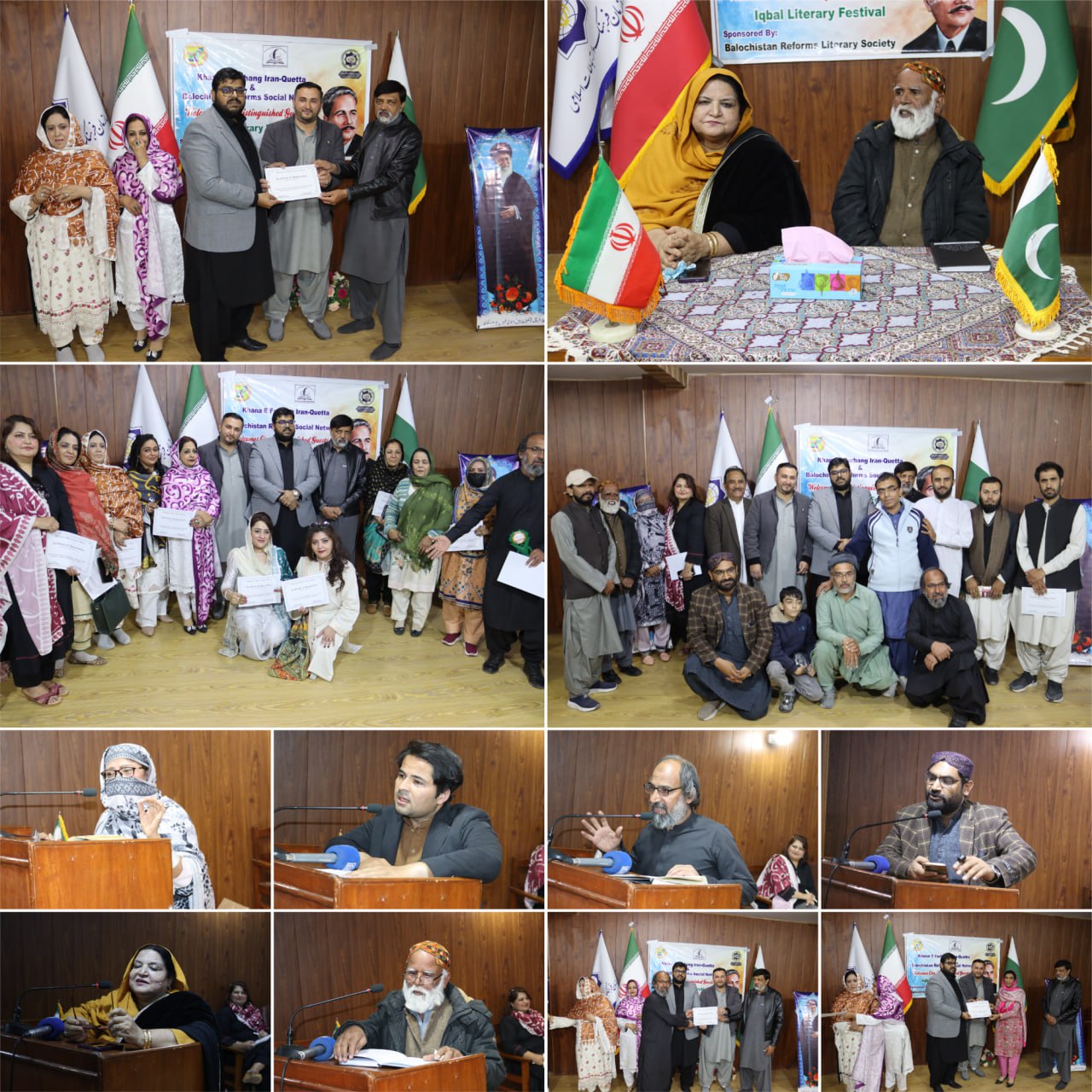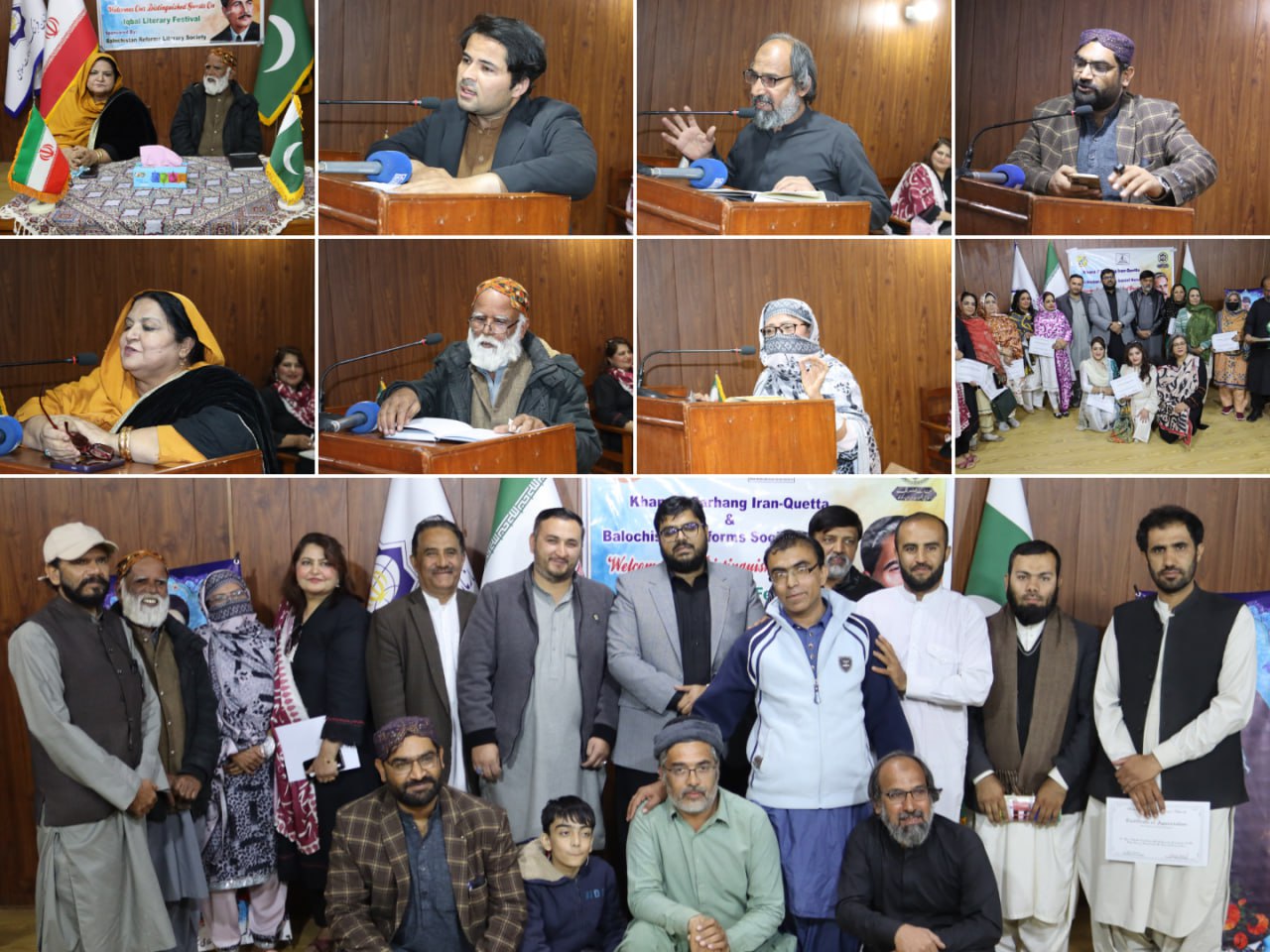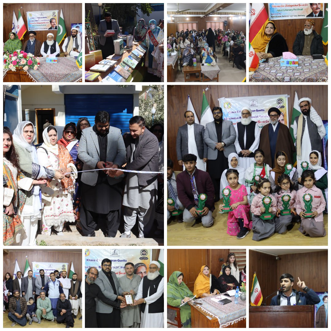 کوئٹہ میں بلوچستان ریفارمز سوشل نیٹ ورک اور خانۂ فرہنگ ایران کے اشتراک سے اقبال ادبی میلہ 2025 کا انعقاد کیا گیا، جس میں مذہبی، ادبی اور سماجی حلقوں کی اہم شخصیات نے شرکت کی۔ تقریب سے خطاب کرتے ہوئے مولانا انوار الحق حقانی، علامہ سید ہاشم موسوی، عبدالمتین اخوندزادہ، پروفیسر فائزہ میر، جسٹس طاہرہ بلوچ اور دیگر مقررین نے علامہ اقبال کے افکار کو امتِ مسلمہ کی فکری رہنمائی کا محور قرار دیا۔ مقررین نے کہا کہ شاعرِ مشرق نے ہندوستان میں توحید و وحدتِ امت کے تصور کو پروان چڑھایا اور قرآنِ پاک کو پوری انسانیت کے لیے شفا و رہنمائی کا ذریعہ قرار دیا۔ انہوں نے کہا کہ اقبال کی شاعری اور نثر کا مرکزی موضوع ختمِ نبوت کا تصور، ملتِ اسلامیہ کا احیا، مساوات پر مبنی جمہوریت اور مسلمانانِ ہند کی فکری تربیت تھا۔ فیسٹیول کے دوران مختلف اسکولوں کے درمیان اردو اور انگریزی تقریری مقابلے منعقد ہوئے۔ اردو مقابلے میں پہلی پوزیشن گورنمنٹ انٹر کالج نواں کلی کی طالبہ فائزہ عاصف نے حاصل کی جبکہ انگریزی مقابلے میں پہلی پوزیشن بلقیس زین اللہ کے حصے میں آئی۔ کتاب میلہ اور محفلِ مشاعرہ بھی تقریب کا اہم حصہ رہے جن میں ڈاکٹر فرحت حسین، منظور کھوکھر، بشریٰ میروانی، فاطمہ خان، شہزادی فوزیہ کاسی، فردوس، ماہ جبین، حمیدہ بانو، فائزہ شکیل سمیت متعدد ادیبوں اور شعراء نے شرکت کی۔ مقررین نے اس بات پر زور دیا کہ نوجوان نسل کو فکرِ اقبال کو سمجھ کر اپنے کردار اور زندگی میں شامل کرنا ہوگا کیونکہ یہی دورِ جدید کے چیلنجز سے نمٹنے کا واحد راستہ ہے۔ ان کا کہنا تھا کہ پاکستان کی فکری بنیادوں میں علامہ اقبال کا شعوری اور تخلیقی جذبہ نمایاں ہے اور اقبال کا خواب قرآن کے نظام اور عدلِ اجتماعی کے قیام سے ہی مکمل ہوگا۔